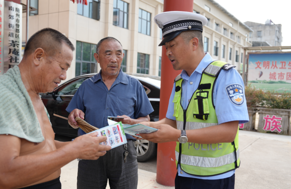 为进一步加强农村地区交通安全宣传教育,全面筑牢农村道路交通安全防线,8月5日上午,随州公安交警宣教小分队走进曾都区南郊街道茶庵社区开展“美丽乡村行”交通安全巡回宣传活动。